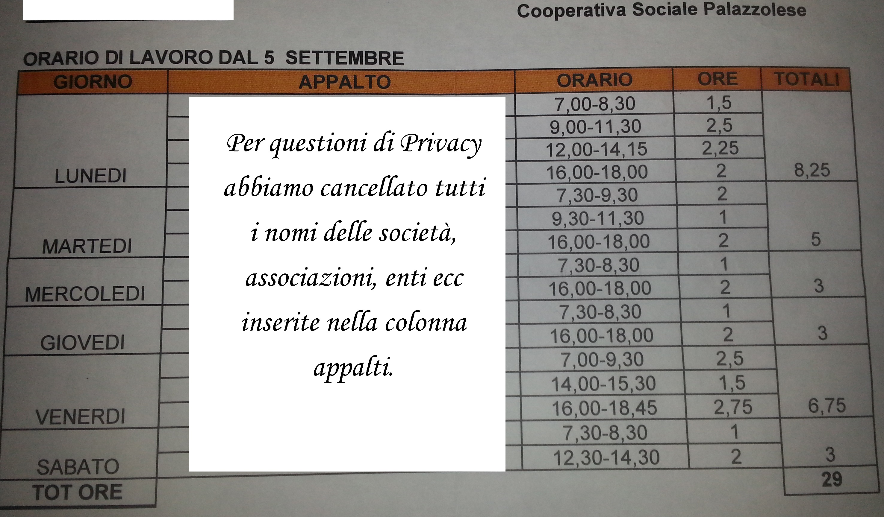 orari pulizie 19 novembre 2015 2952 × 1728 Il “Pioppo” & i furbetti della Cooperativa Sociale Palazzolese