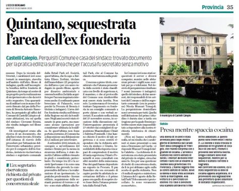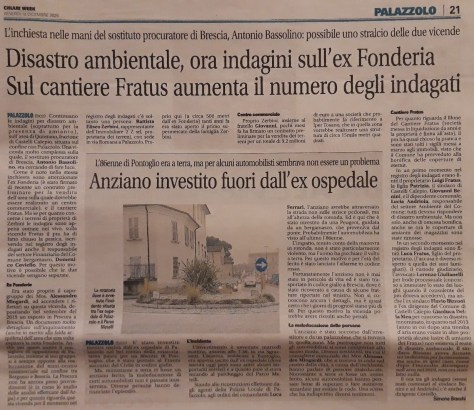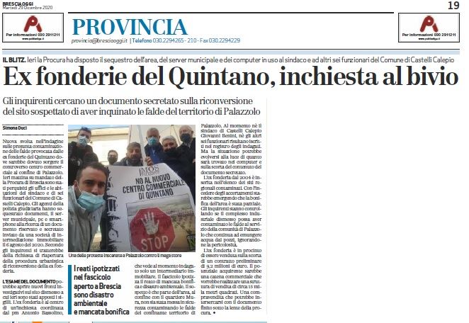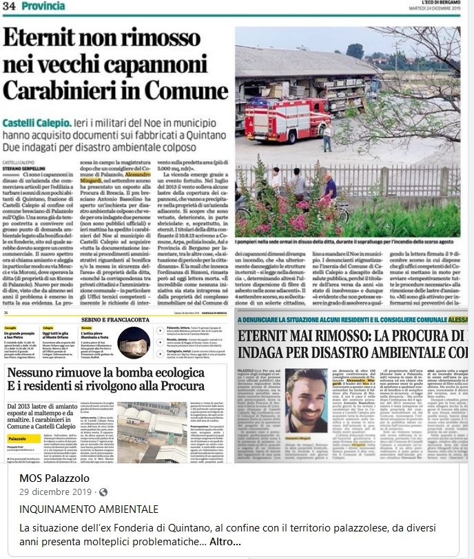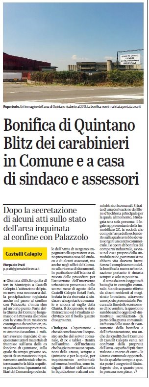 A distanza di un anno arrivano i primi risultati. Grazie all’esposto per disastro ambientale presentato alla Procura di Brescia dal nostro Consigliere comunale Alessandro Mingardi, l’area dell’ex Fonderia di Quintano, sul confine fra il territorio di Palazzolo s/O (Bs) e Castelli Calepio (Bg), nei giorni scorsi è stata messa sotto sequestro dal PM che segue il caso.