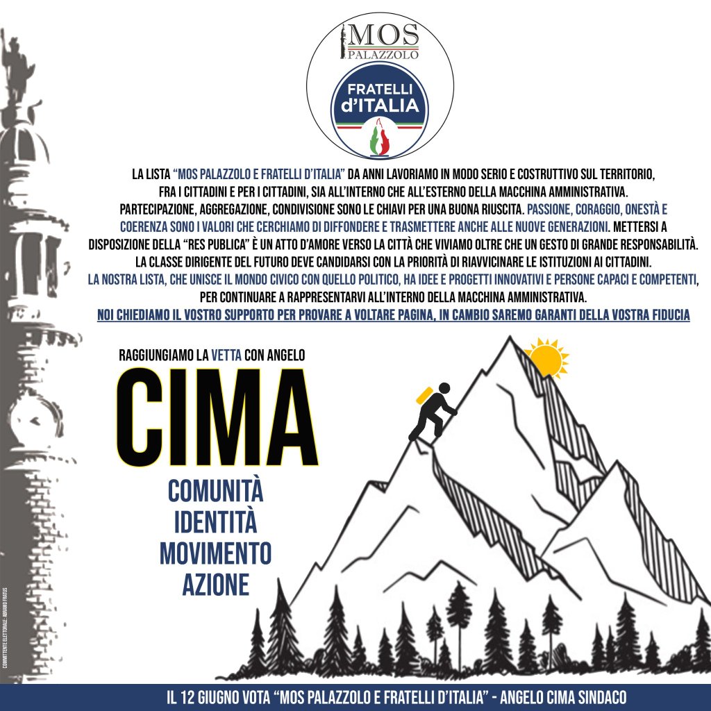 Il 12 giugno VOTA “MOS PALAZZOLO e FRATELLI D’ITALIA”!