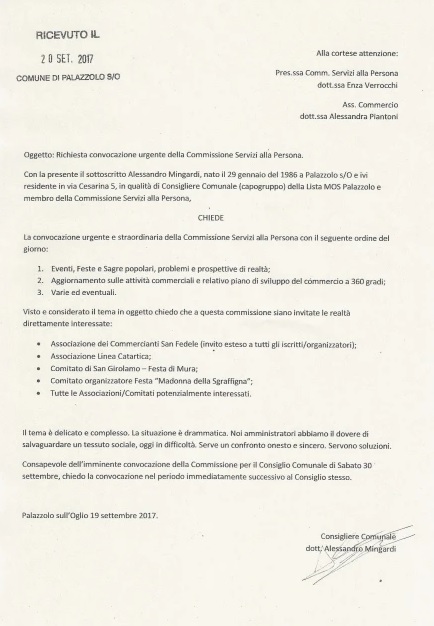 Noi dobbiamo vivamente ringraziare i commercianti palazzolesi che in un periodo così complicato resistono permettendo a noi di godere della loro presenza e dei loro servizi sul territorio. E’ altrettanto evidente la disorganizzazione amministrativa nel gestire gli eventi palazzolesi. Non è la prima volta che denunciamo questa lacuna. Comprendiamo il “continuiamo insieme” voluto dai cittadini ma sarebbe quantomeno opportuno sistemare gli stessi errori che si vedono da 10 anni a questa parte.