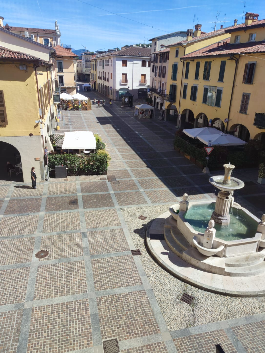 Piazza Roma. La Festa di Mura è ben radicata nel rione che ha dato il nome alla sagra ma negli ultimi anni in più di un’occasione si era provato a coinvolgere Piazza Roma. Nei giorni scorsi abbiamo assistito alla splendida premiazione delle nubende all’interno della meravigliosa cornice della Fondazione Cicogna Rampana e non nella Piazza cittadina. Il Comune ha chiuso Piazza Roma e Piazza Zamara al traffico. Piazza Zamara vedeva esporre diversi negozi in prossimità della fontana, mentre in Piazza Roma questo è stato il risultato (foto)