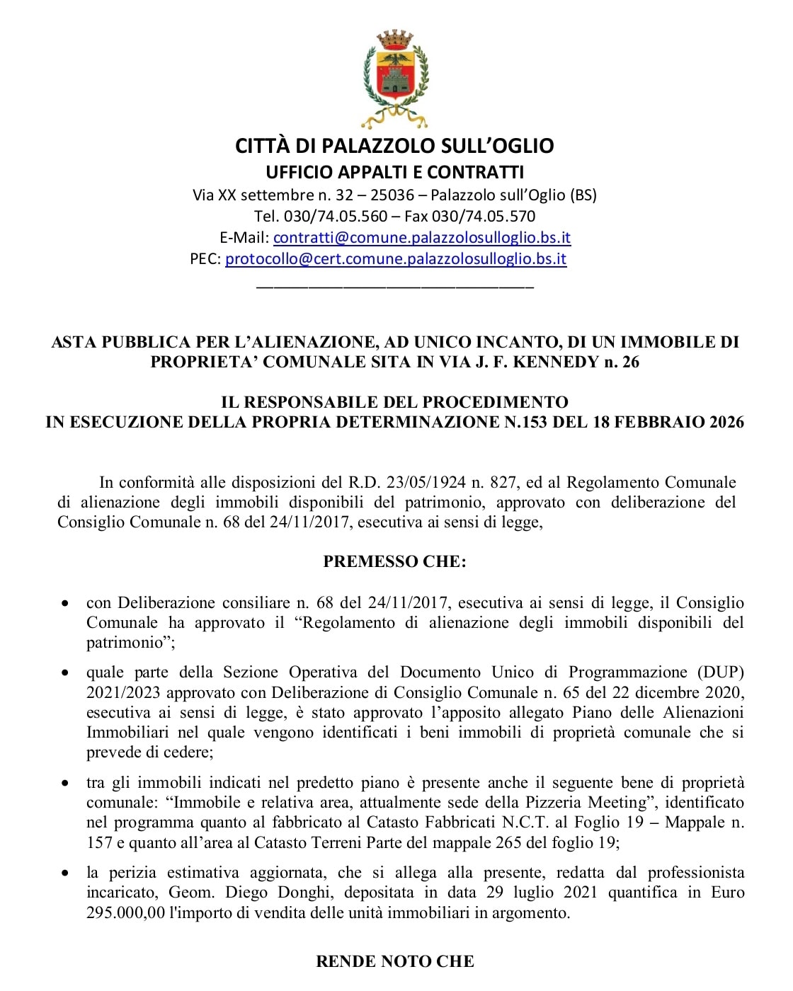 L’ultimo avviso pubblico venne pubblicato in data 15 marzo 2023, Protocollo Generale n. 10292, e assegnato con determinazione n. 440 del 24 maggio 2023. L’Avviso d’asta pubblica prevedeva l’obbligo per l’aggiudicatario di provvedere alla stipula dell’atto notarile entro il termine di 90 dall’aggiudicazione.