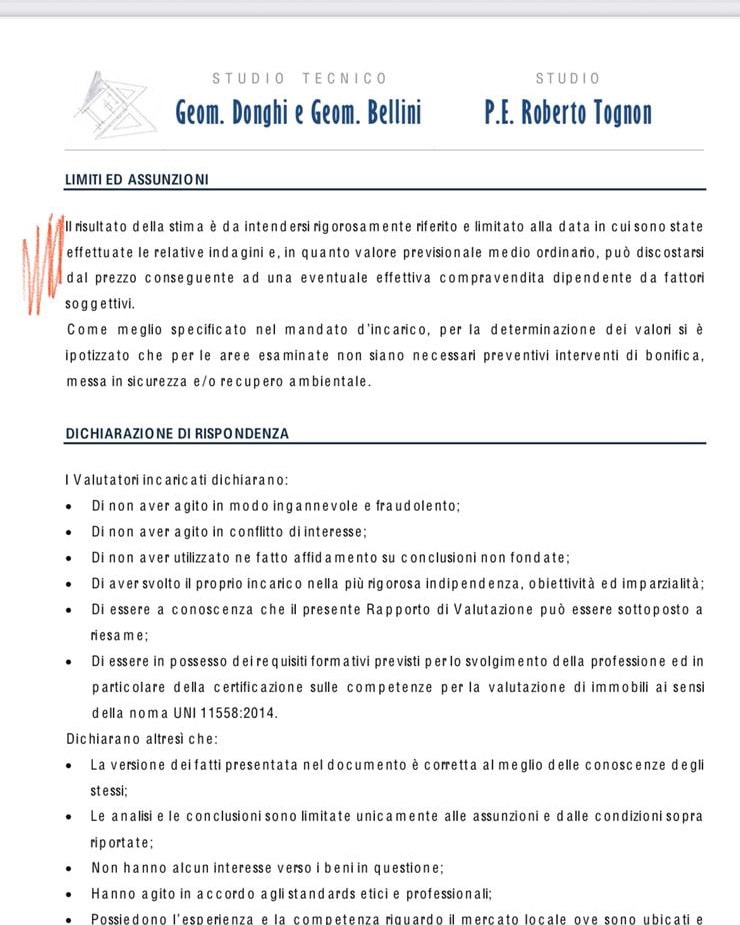 La cosa incredibile è l’ennesimo errore di pubblicare un bando con una perizia dei Geom.Donghi e Bellini del 2021 che al suo interno sottolineava a pag.19/48 come “Il risultato della stima è da intendersi rigorosamente riferito e limitato alla data in cui sono state effettuate le relative indagini e, in quanto valore previsionale medio ordinario, può discostarsi dal prezzo conseguente ad una eventuale effettiva compravendita dipendente da fattori soggettivi.”